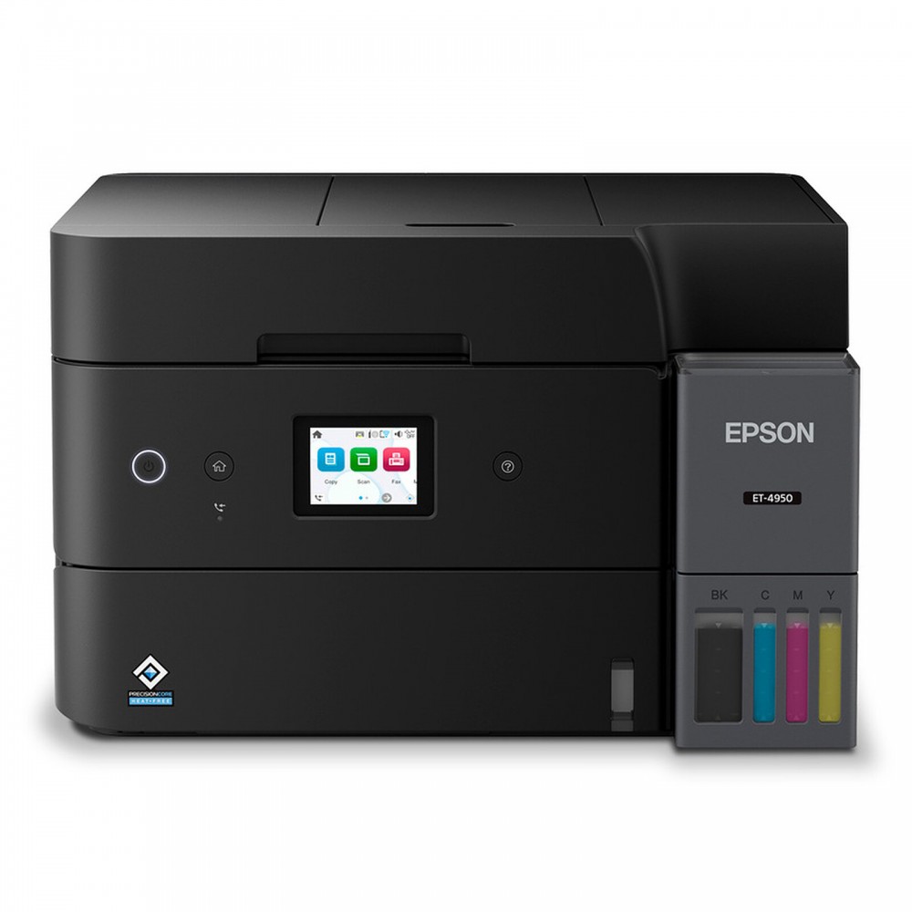 Epson EcoTank ET-4950. Tecnologia di stampa: Ad inchiostro, Stampa: Stampa a colori, Risoluzione massima: 4800 x 1200 DPI, Velocità di stampa (colore, qualità normale, A4/US Letter): 23 ppm. Scansione: Scansione a colori, Risoluzione di scansione ottica: 1200 x 2400 DPI. Fax: Fax a colori. Funzione duplex: Stampa. Massimo formato carta serie ISO A: A4. Wi-Fi. Stampa diretta. Colore del prodotto: Nero